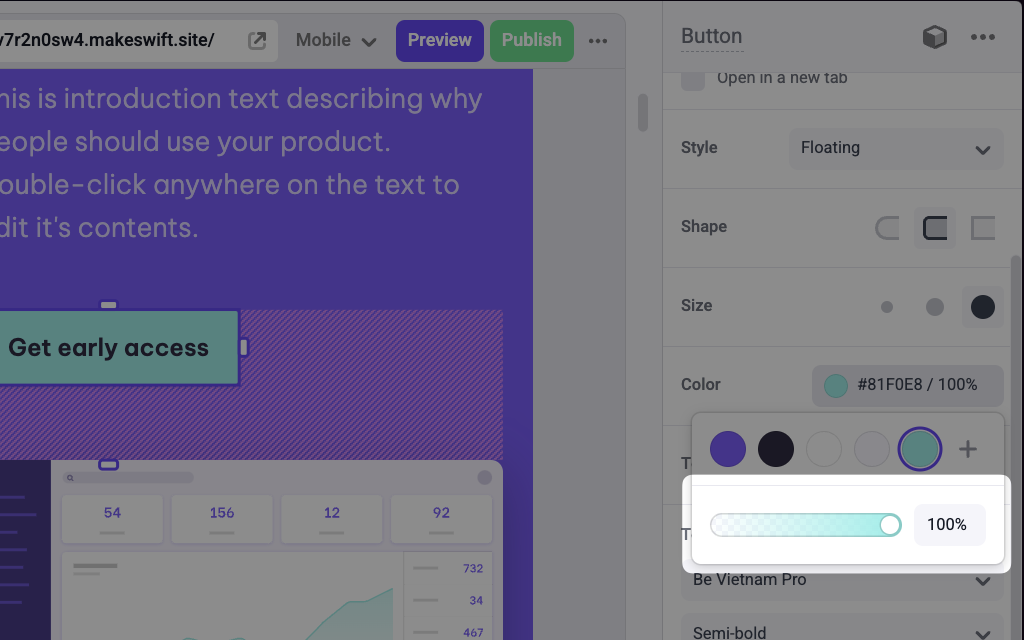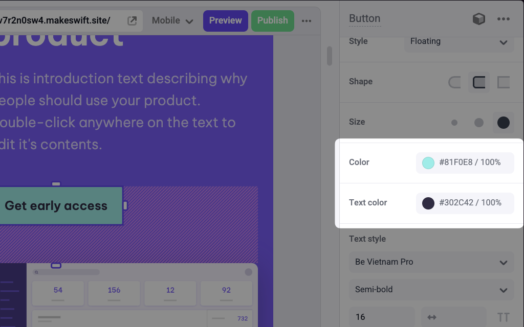 The following examples adds two Color controls to thebackgroundColor and color props of a Button component.